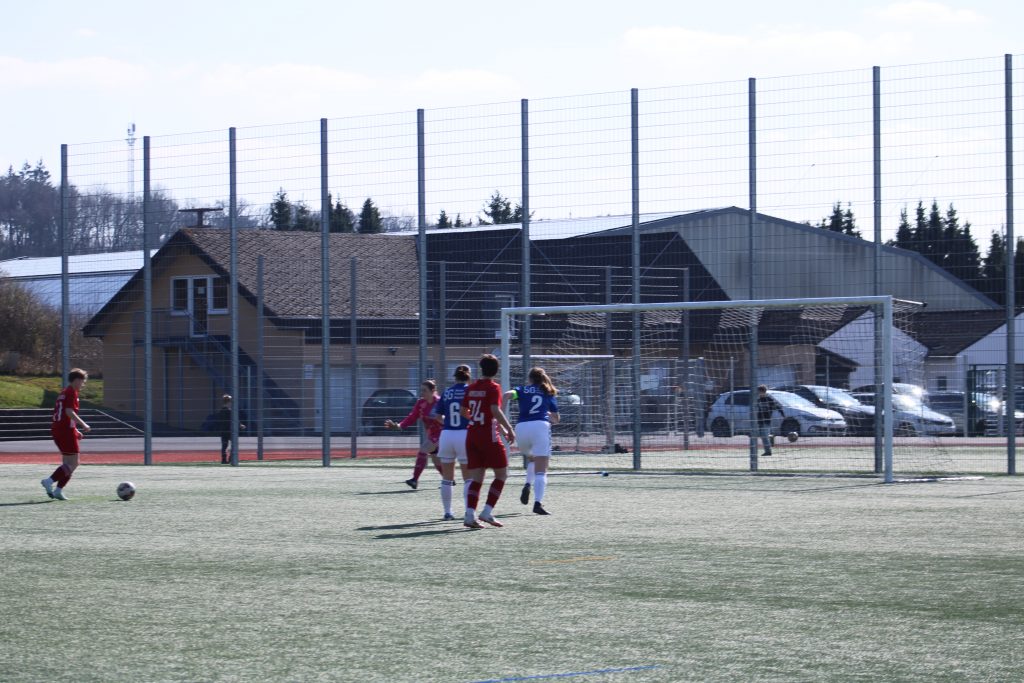 Es ging recht verhalten im Spitzenspiel des Tabellenführers gegen den Tabellendritten (wir) los. Aber in der 10. Minute schickte Betül Sissi steil, die eiskalt zur Führung einschob. Danach übernahmen die Hundsängerinnen das Spiel. Trotzdem musste Helena im Tor zweimal in extra Klasse retten, wobei einmal der Wind eine entscheidende Rolle spielte. So ging es mit knapper Führung in die Pause.