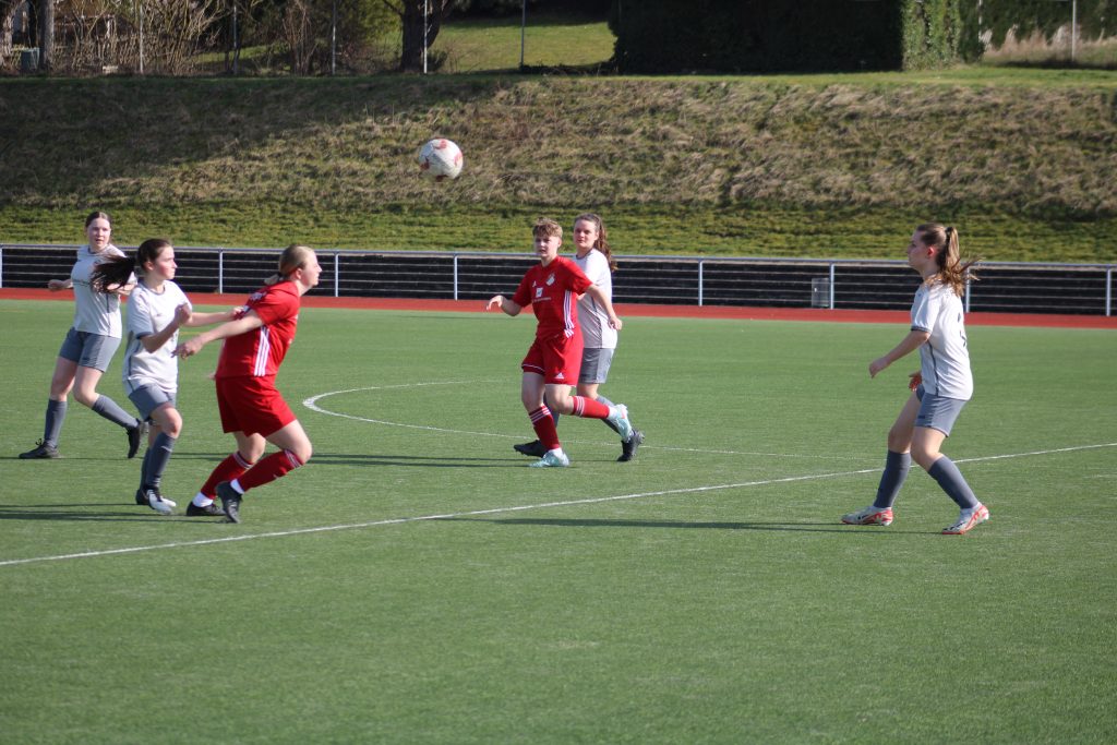 Nach der Pause sah man eine verbesserte Heimmannschaft, die anscheinend die Halbzeitansprache der Trainer umsetzen konnte. Wir wurden stärker und erspielten uns auch einige Chancen. Bei der größten Chance Mitte der zweiten Hälfte wurde Tabea sehr gut in Szene gesetzt und schob den tollen Pass nur knapp rechts am Tor vorbei. Als dann der 14-jährige (!) Schiedsrichter auf erneutes Reklamieren auf Gegnerseite sehr spät zum Freistoß in der 88. Minute pfiff, hielten alle die Luft an, denn wir wussten um die Freistoßstärke von Nora. Sie hat uns bereits in früheren Spielen aus solchen Situationen Punkte geklaut. Und auch diesmal schlenzte sie den Ball vom rechten Strafraumeck unhaltbar in den linken oberen Winkel. Damit war die Niederlage besiegelt.